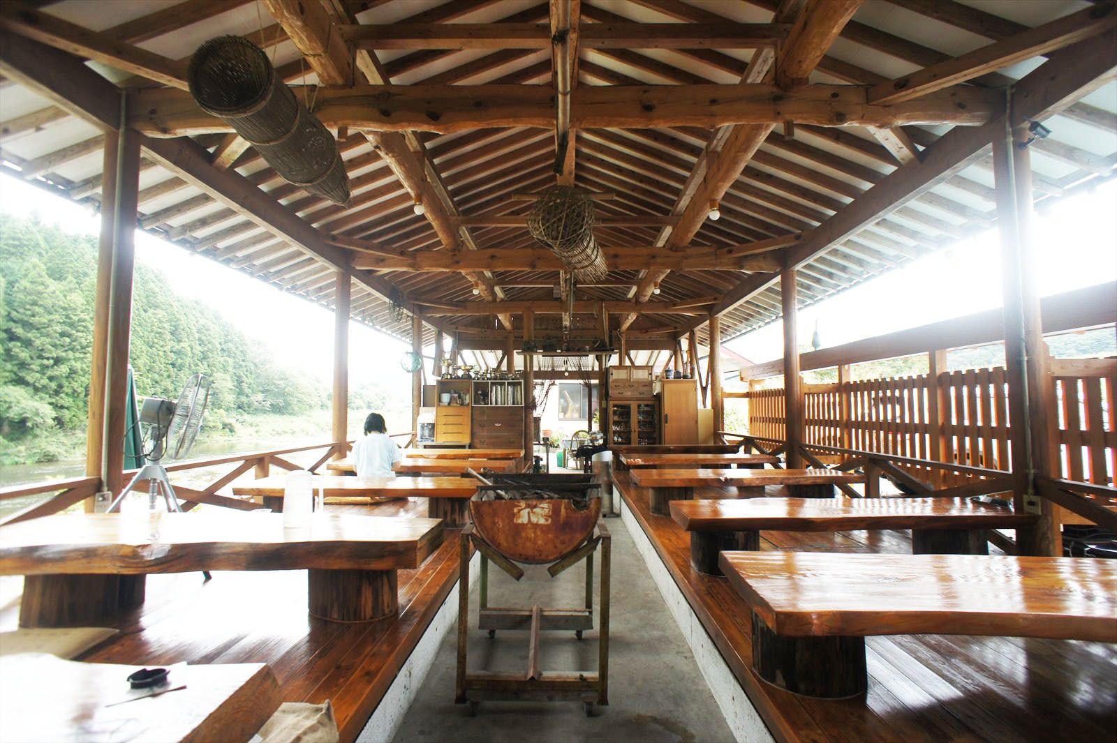 久慈川沿いに作られた店舗は、室内の母屋の他にオープンエアーで心地の良い建屋がある。